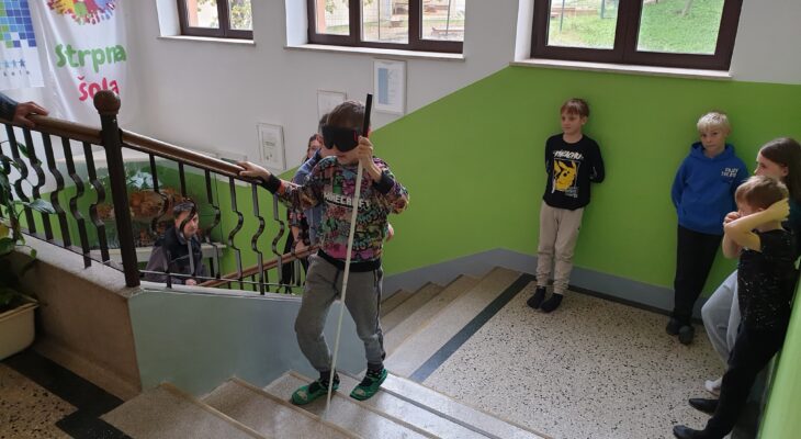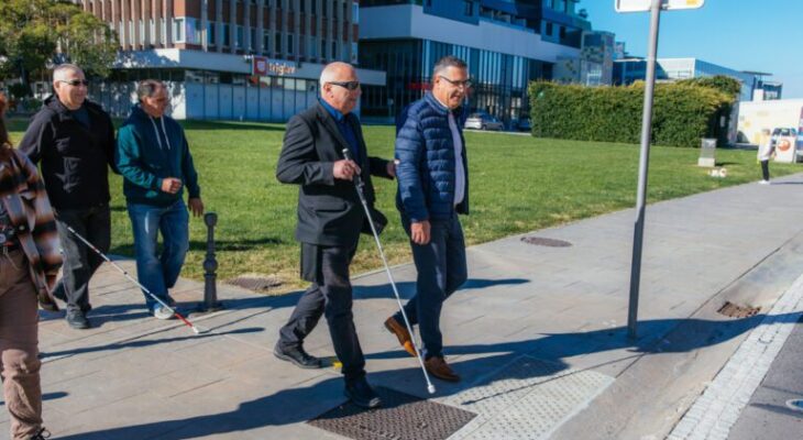 Župan s slepimi in slabovidnimi prehodil taktilno pot po mestu