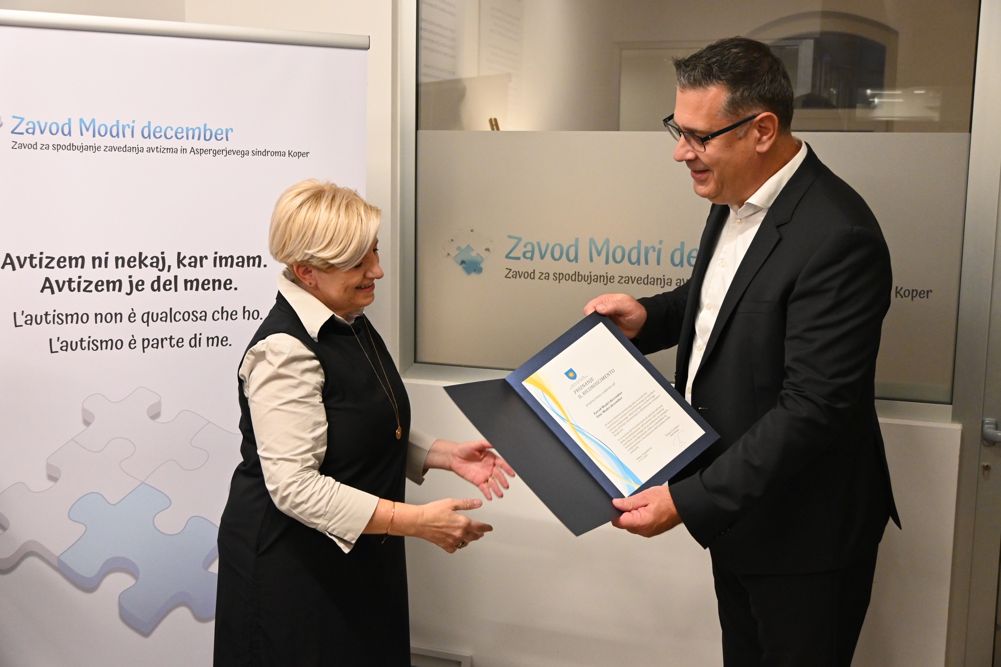 Prisotne sta nagovorila direktorica Zavoda Modri december Patricija Lovišček, in župan Mestne občine Koper Aleš Bržan. Ob tej priložnosti je župan direktorici izročil priznanje Mestne občine Koper ob deseti obletnici predanega dela na področju ozaveščanja o avtizmu in kontinuiranega prispevka k razvoju podpornega, vključujočega in strokovnega okolja, ki krepi razumevanje in sprejemanje avtizma v skupnosti.